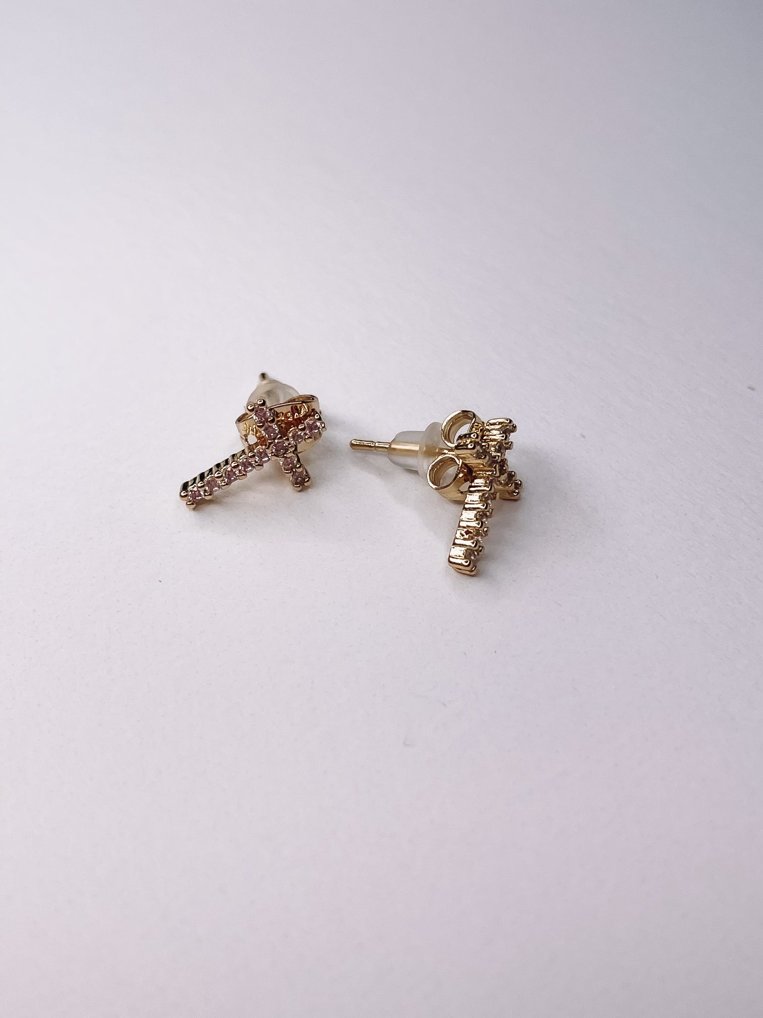 Expertly crafted with small diamonds, He Is Studs feature a cross...