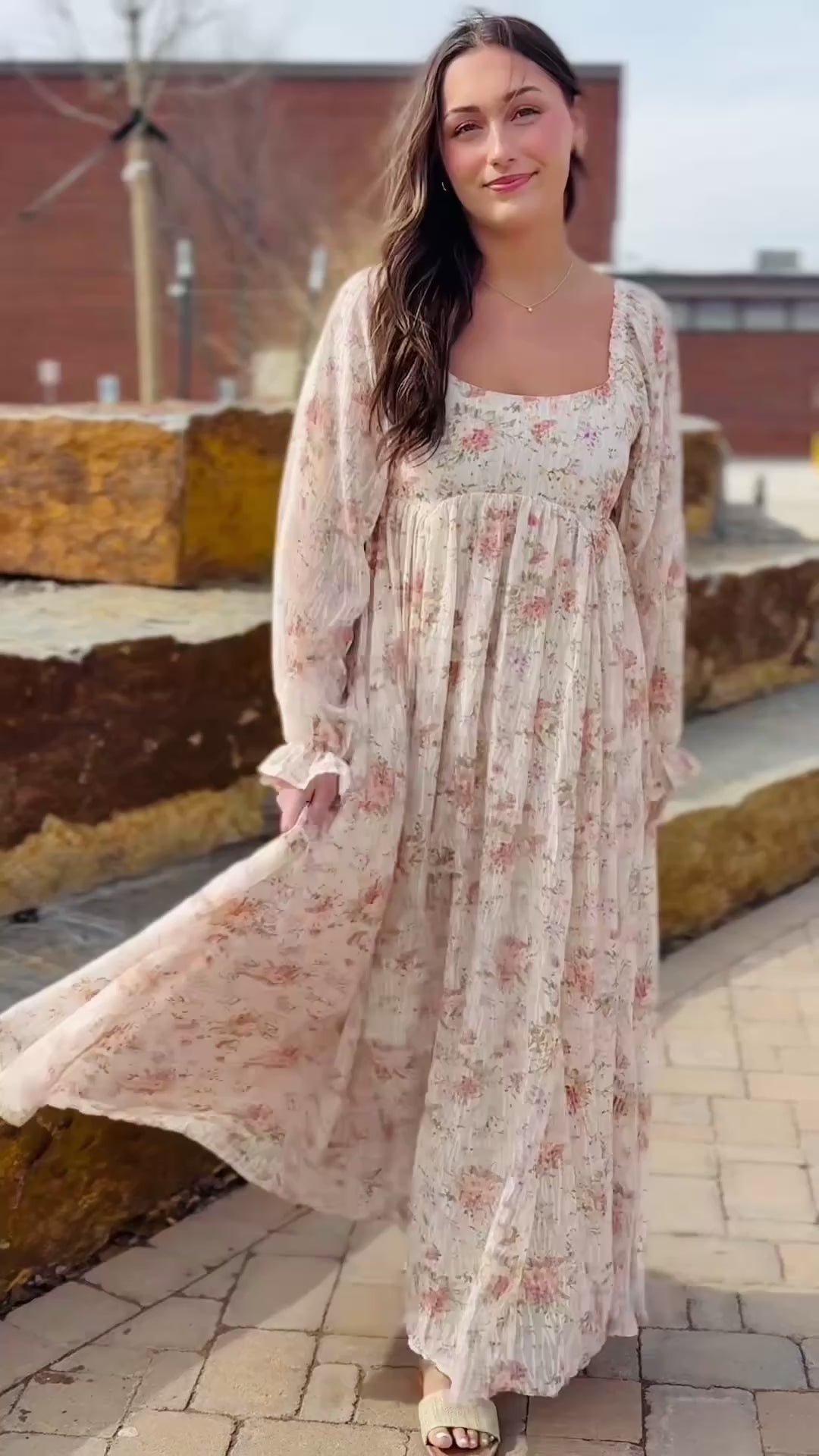 Style It With: For a romantic, wedding guest moment, pair her with strappy nude or blush heels, soft gold jewelry, and a sleek low bun to let the sheer sleeves and floral details shine. Dressing her down for daytime? Add neutral wedge sandals or flats!