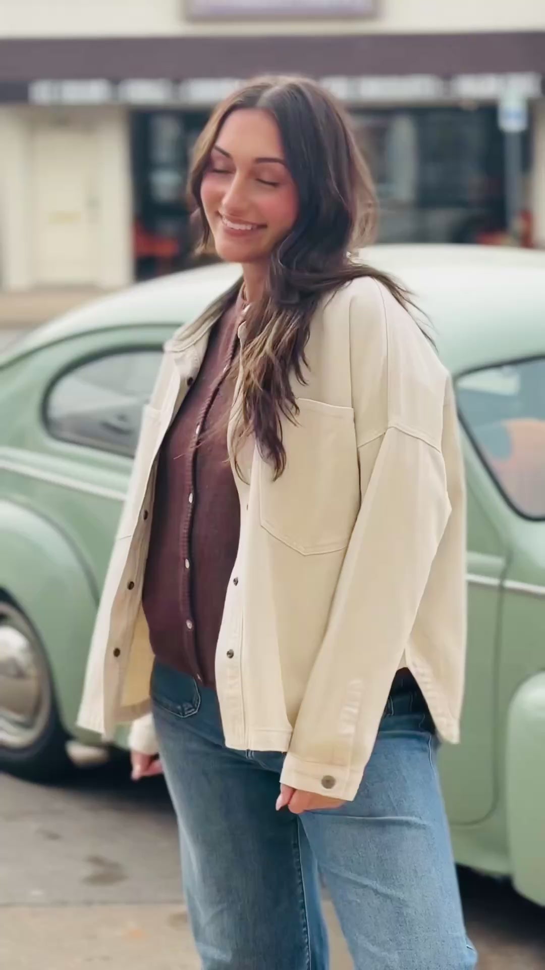 Elevate your everyday look with this jacket that goes from coffee runs to golden hour plans with ease. This cream snap button denim jacket is made for the girl who wants to look put together but still carefree. With a slightly oversized fit and bold front pockets, it gives off that cool, borrowed from the boys energy while still feeling fresh and feminine. It’s just as cute snapped closed with your favorite jeans as it is worn open with a tank underneath. This is the kind of piece that lives on the back of your chair because you’re always reaching for it.