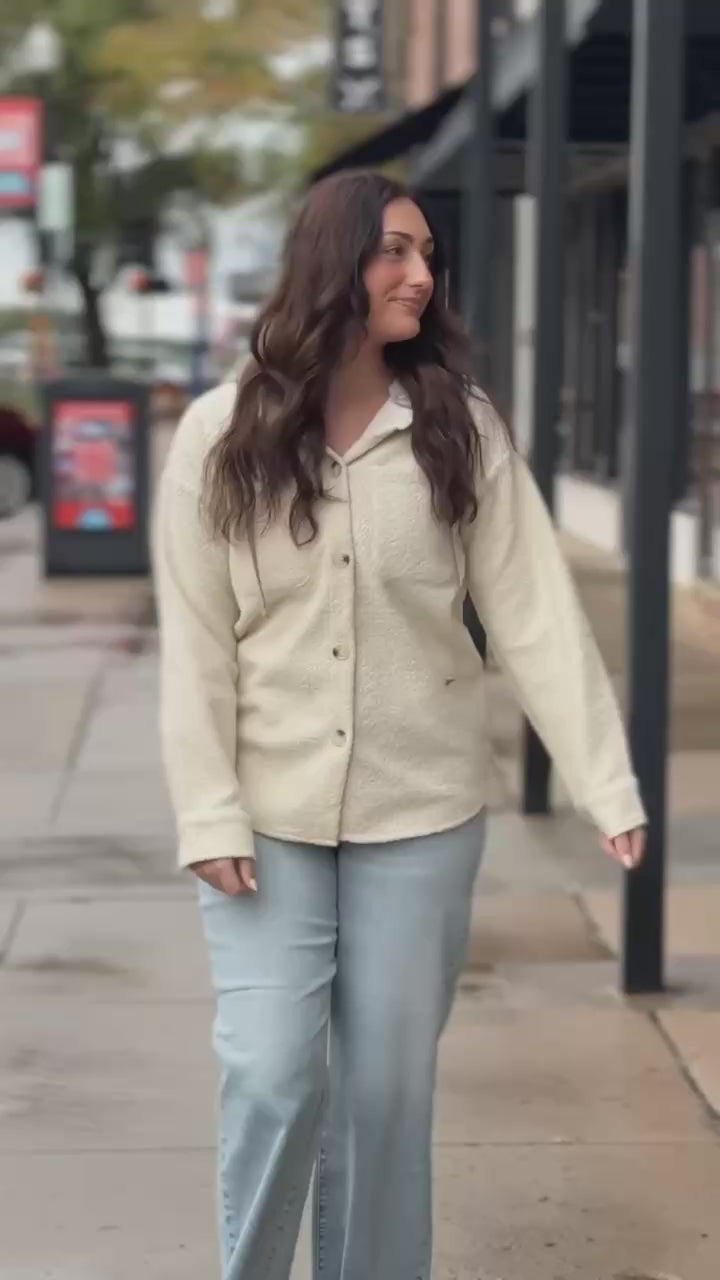This sherpa jacket is like nothing we’ve ever seen before. The soft textured sherpa fabric and creamy tone give it that effortless fall feel, while the detachable hood makes it even better, two looks in one. Wear it hood on for those cooler days or take it off when you want that true shacket look. Comfy, cute,  and just a little cooler than everyone else.